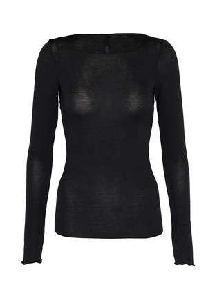 Your most elevated lounge top. Sheer with a fitted silhouette, this chic style keeps you comfortable with its incredibly soft and stretchy modal-cashmere fabric. Elevated with a wide boat neck and extra long sleeves.
