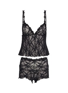 Slip into something naughty and nice. Made from SKIMS' signature stretch lace with floral details, this festive lingerie set features a semi-sheer cami adorned with alluring rosette details and a playful contrast lettuce edge. Paired with a matching mid-rise boy short, it’s the sexiest holiday treat for yourself.
