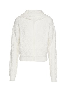 Winter layering with a flirty twist. This zip-up jacket features a soft hood, kangaroo pocket, and a shrunken fit that hugs just right. Finished with ribbed cuffs and hem in SKIMS' luxurious cable knit fabric.