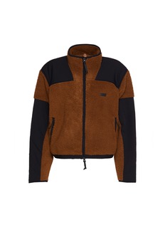 Soft, sporty, and versatile. Designed with a loose mock neck and woven panel details, this relaxed faux shearling zip-up fits every chic look all season long. Features side zipper pockets and an adjustable cord at the hem. Complete with a SKIMS logo on the chest.