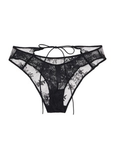 Perfect for the romantics and those who are daring. Sheer seduction. Sexy and flattering in the Ultra Fine Lace collection, this bikini features feminine detailing and cut, lace trim, and string bow accent.