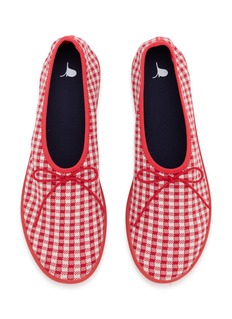 Softromaine's slip-on shoe brings playful charm to minimalist comfort with its distinctive gingham check pattern. The streamlined silhouette features a delicate bow detail and ultra-flexible construction for effortless, all-day wearability. Exceptionally lightweight and designed to mold to your foot, it's the perfect blend of whimsy and sophistication.