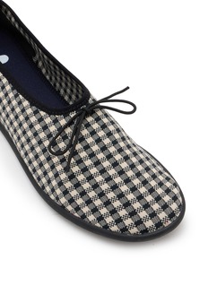 softromaine's ballet flats combine timeless elegance with cozy comfort through their classic houndstooth pattern and refined silhouette. The design features a soft upper with delicate bow accent, elasticated collar for flexible fit, and cushioned flat sole. Heritage-inspired styling and effortless wearability make these flats perfect for everyday ease.