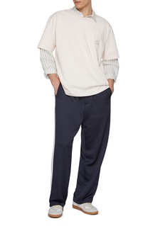 Refine your wardrobe with these black pants from Solid Homme. Featuring a comfortable elasticated waist and a contrast side stripe, they seamlessly blend tailored style with athleisure comfort.