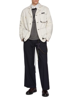 Ease and intention converge in these lounge pants by Song for the Mute, cut from fluid wool gabardine for a softly structured drape. Elevated by tactile rope detailing, they blur the line between tailoring and leisure—ideal with knitwear or shirting for modern, unforced dressing.