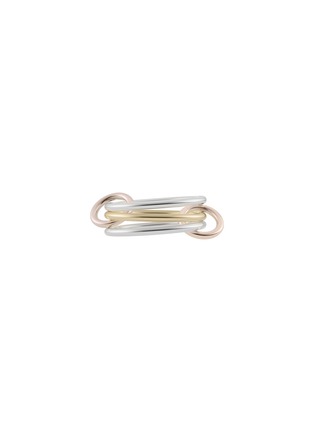 The Solarium ring offers luminous, multi-tonal and mono-tonal palettes with the kinetic appeal of thin-gauged bands and connectors. Dynamic to its core, the Solarium's modular design allows for wear on a single finger, or across several.
