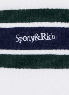 Add a touch of sporty elegance to your daily ensemble with these Brunello Cucinelli socks. Crafted from premium materials, they feature a crisp white base with contrasting dark green stripes, offering a fresh and clean look.