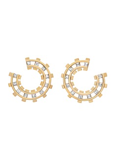 The Railroad Diamond Loop Earrings capture the magic of a dream in motion. Inspired by a story of a railroad to space, carré-cut diamonds are set along a golden track that curves elegantly around the lobe. Playful yet sophisticated, they blend nostalgic charm with futuristic form—a dynamic and luminous companion for any moment.