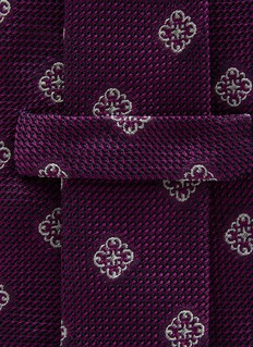 Introducing the Stefanobigi Milano Patterned Granadine Silk Tie, an epitome of Italian luxury and style. This tie features a deep purple hue, beautifully complemented by intricate silver paisley patterns, creating a distinguished and eye-catching design. The granadine silk fabric, known for its textured weave, provides a subtle sheen and a rich feel, enhancing the tie's luxurious appeal. Perfect for adding a touch of sophistication to any formal outfit, this tie is ideal for events where making a stylish impact is key.