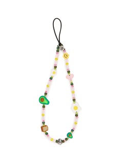 String Ting's playful phone strap celebrates breakfast culture with hand-beaded charm featuring avocado, toast, and smiley face motifs interspersed with faceted glass beads. The whimsical food-themed design includes branded detailing and secure cord loop attachment. A joyful, nostalgia-driven accessory that brings artisanal craftsmanship and personality to everyday tech.