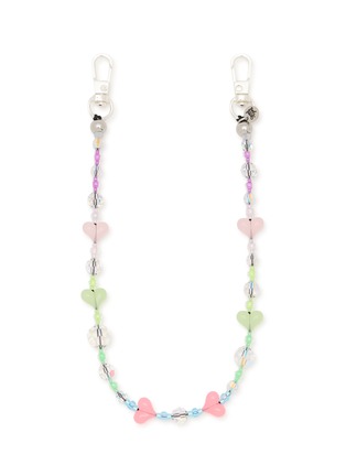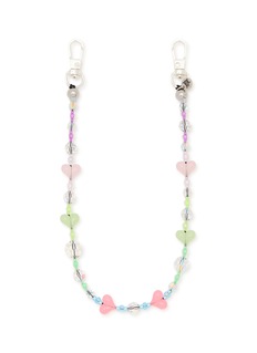 String Ting brings playful sophistication to this handcrafted phone strap, featuring whimsical heart charms, faceted crystal beads, and pastel semi-precious stones in a gradient arrangement. The artfully sequenced design with metallic accents and secure dual clasp attachments delivers charming functionality, transforming your device into a stylish wearable accessory.