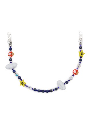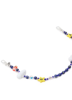 String Ting's playful phone strap features hand-strung glass beads punctuated by whimsical cloud, star, and graphic motifs with swivel clasps at both ends. The nostalgic Y2K design combines varied bead sizes and sculptural charms for personality-driven style. A versatile accessory that clips securely to phones, bags, or keys with dual-ended functionality.