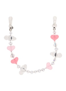 String Ting's romantic phone strap features sculptural lucite heart charms interspersed with iridescent crystal beads and lustrous pearl accents, secured with dual swivel clasps. The ethereal design captures nostalgic Y2K charm through its dreamy combination of translucent hearts and shimmering faceted glass. A whimsical accessory offering versatile attachment to phones, bags, or keys.