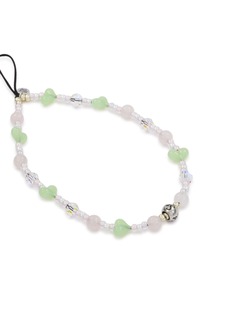 Embrace the essence of spring with the String Ting Garden Dreams Beaded Wristlet. This dainty accessory features a soothing palette of soft pinks and refreshing greens, adorned with heart-shaped beads and delicate crystal accents. It's a perfect blend of elegance and whimsy, ideal for adding a touch of garden-inspired serenity to your everyday essentials.