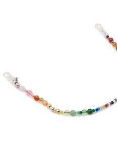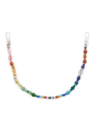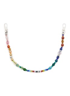 String Ting's artisan phone strap features a mesmerizing rainbow gradient of hand-strung glass beads, semi-precious stones, and faceted crystals in graduating sizes. The spectrum design flows seamlessly through lustrous pearls and metallic accents, secured with polished swivel clasps. A wearable art piece that celebrates individuality with nostalgic Y2K charm.
