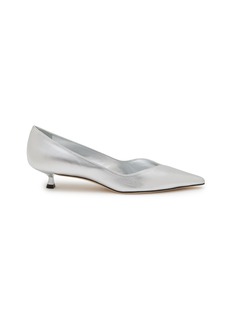 The metallic rendition of the Eva silhouette by Stuart Weitzman introduces a cool, mirror-like sheen to its iconic pointed-toe profile. Balanced on a softly curved 35 mm heel, this polished pair delivers a modern, luminous accent to both tailored looks and evening ensembles.