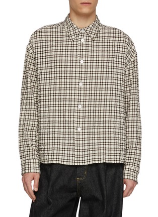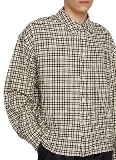 A study in texture and proportion, this shirt reflects Studio Nicholson’s quiet precision through a softly brushed cotton check weave. Designed with a clean point collar and generous, slightly boxy shape, it brings ease to everyday layering while retaining a composed, tailored presence.