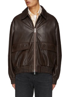 Let your fashion sense shine with Studio Nicholson. This jacket's rich brown hue exudes vintage-inspired charm, while the supple leather adds a luxurious touch. The two big flap pockets not only provide ample storage space but also add a utilitarian edge to this classic silhouette.