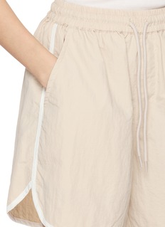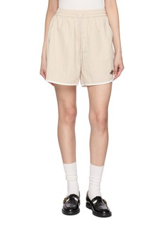 Tailored ease in motion: these elasticated shorts are screened in a refreshing beige hue with a contrasting trim. Logo embroidery signs off the piece. Style with a ribbed tank by day, or add an oversized blazer for city polish.
