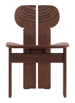 A timeless expression of sculptural balance, this chair embodies the constructive poetry of wood. Conceived by Tobia Scarpa, its bold Canaletto walnut frame is softened by an aniline leather seat, merging strength and sensuality in a design that endures across generations.