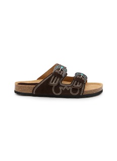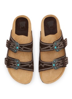 TAJI's Western-inspired sandals feature intricate topstitch detailing and ornate buckle hardware for a bold, statement-making design. The dual-strap silhouette combines heritage craftsmanship with a contoured footbed for superior comfort. A distinctive style that adds character and edge to both casual and curated looks.