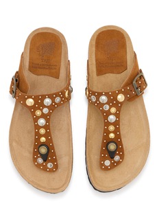 TAJI's thong sandal merges bohemian charm with contoured comfort through studded embellishments, an adjustable buckle strap, and cork-effect footbed. The casual silhouette features decorative hardware, a cushioned insole, and durable rubber sole for effortless warm-weather style. A laid-back essential that balances artisanal detailing with everyday wearability.
