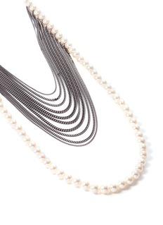 Incorporating avant-garde style to traditional Japanese craftsmanship, this necklace by TASAKI is designed in tiers of curb chains. This striking piece is beautifully highlighted by its line of freshwater pearls.
