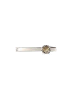 Elevate your professional attire with the intricate sophistication of Tateossian's Tie Clip. This sleek, polished silver tie clip showcases an authentic watch mechanism, revealing the art of horology. Perfect for the discerning gentleman, it combines functionality with an undeniable flair for the dramatic, ensuring your look is always sharp and stylish.