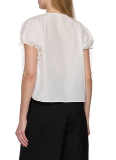 In a world of noise, The Loom's garments offer quiet confidence and timeless simplicity for the discerning individual. Rendered in a crisp white hue with puff sleeves and ties, this blouse exudes a feminine allure.