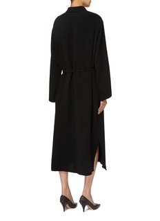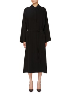 Experience the epitome of effortless style with The Row's Azura Shirt Dress. This exquisite dress offers the perfect balance of comfort and sophistication. With its classic shirt dress silhouette, it features a button-down front, a sleek collar, and a waist belt for a flattering fit.