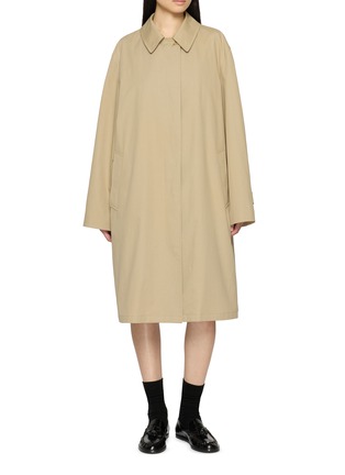 A refined outer layer shaped by The Row’s understated precision, this coat is cut with fluid ease and quiet structure. The shell drapes softly over tailored or casual looks, adding a subtle sense of luxury for transitional, everyday wear.