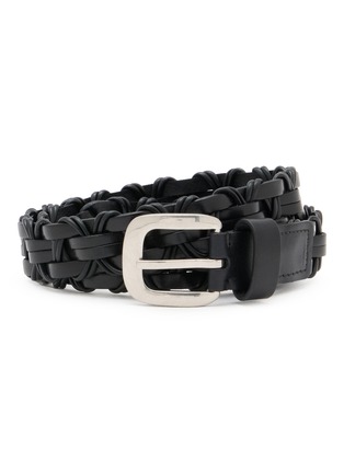 Understated luxury meets artisan craftsmanship in The Row’s leather cord belt, where handwoven black leather and a polished buckle create a textured statement. The intricate braiding and minimalist design embody effortless refinement, perfect for elevating any ensemble.