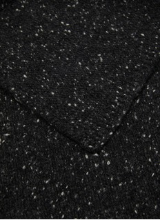 Elevate your winter wardrobe with this sumptuously soft scarf from The Row. Knitted from a high-quality wool blend infused with subtle metallic threads, it offers both warmth and a gentle shimmer. The classic black color ensures versatility, while the rich texture adds a touch of luxurious depth to any outfit.