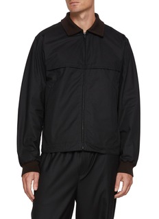 The Row channels a refined utilitarian mood in this crisp Japanese cotton gabardine jacket. Its structured lines are softened by ribbed trims, while the contrast collar introduces quiet depth. A transitional layer with a minimalist spirit, ideal for grounding tailored or off-duty looks.