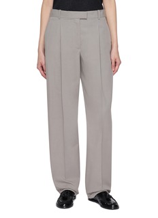 Soft structure meets serene precision in The Row’s Neriah trousers. Tailored from a refined cotton-silk blend, this high-rise style falls into a gently tapered leg with clean front creases — embodying the brand’s quiet elegance for day-to-evening wear.