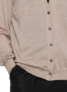 A refined layer shaped by The Row’s understated precision, this cardigan is crafted with a classic button-up front and V-neckline. This piece layers softly over tailored or casual looks, a luxury piece for transitional, everyday wear.