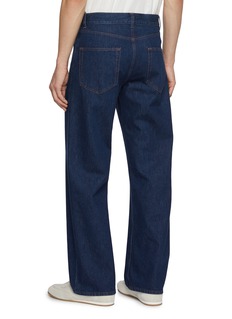 An exercise in precision and ease, these jeans from The Row are tailored from rigid cotton denim in a deep indigo wash. Designed with a mid-rise and wide straight leg, they bring understated sophistication to daily dressing and clean, architectural lines.
