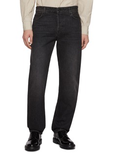 An exercise in precision and ease, these jeans from The Row are tailored from rigid cotton denim in a deep indigo wash. Designed with a mid-rise and wide straight leg, they bring understated sophistication to daily dressing and clean, architectural lines.