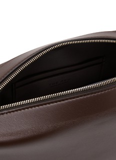 A sculptural everyday piece, this compact clutch embodies The Row’s devotion to form through its sleek rectangular shape and gently structured sides. Crafted from smooth nappa leather, it slips effortlessly into hand or under the arm, offering a polished companion to minimalist daywear or evening tailoring.