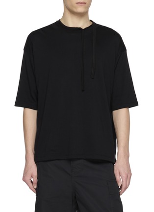 THE VIRIDI-ANNE Collar Strap Cotton T-Shirt