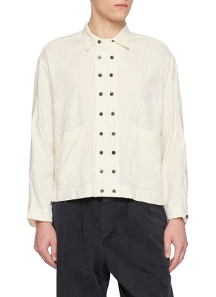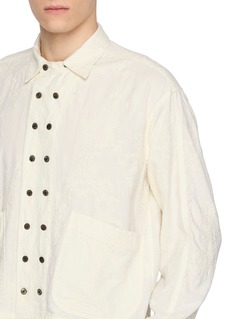 Artistic elegance meets contemporary design in this all-over embroidered shirt, where tonal stitching and a double row of buttons redefine classic tailoring. The textured fabric and relaxed fit embody The Viridi-Anne’s signature blend of tradition and modern sophistication, perfect for effortless, statement dressing.