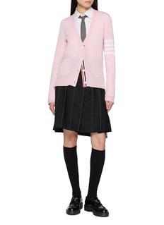 Defined by Thom Browne’s most recognisable codes, this cardigan balances softness with structure. Knitted from fine virgin wool, the relaxed silhouette is accented with the iconic 4-Bar stripe and signature grosgrain trim, lending tailored polish to layered shirting or pared-back skirts.