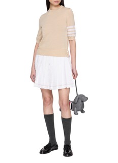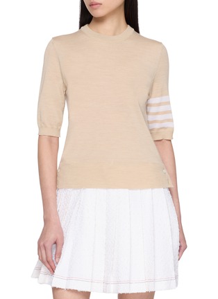Refined through Thom Browne’s lens of modern uniform dressing, this T-shirt features the iconic 4-bar stripe, sharpening its collegiate character. Ideal for layering over shirts or tailoring with understated confidence.
