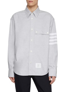 Soft yet structured, this Thom Browne flannel shirt channels effortless refinement through its oversized silhouette. Crafted from brushed cotton with the brand’s iconic 4-bar sleeve motif, it transitions seamlessly from weekend layering to sharp, off-duty styling.
