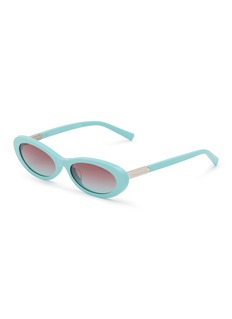 Dive into the delightful charm of Tiffany Eyewear with these elegant sunglasses, showcasing the brand's signature robin egg blue color. These chic oval frames offer a refreshing twist on a classic design, perfect for adding a pop of color to any ensemble. Fitted with lenses that ensure full UV protection, these sunglasses are not only stylish but also practical for everyday wear.