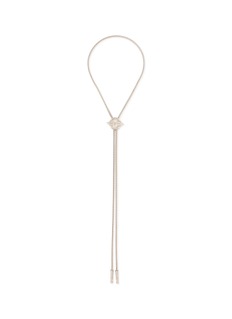 This TOGA VIRILIS loop tie exudes elegance with its slender, silver-tone chain and unique pendant design. The centerpiece features a detailed, artistic motif that adds an intriguing focal point to the piece. Its lengthy drop ends in sleek metallic tips, creating a dynamic look that pairs beautifully with both high and plunging necklines. Ideal for adding a touch of sophistication to evening wear or elevating everyday outfits, this necklace is a testament to TOGA VIRILIS's commitment to blending contemporary fashion with timeless craftsmanship.