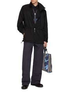 Engineered in lightweight ripstop nylon, this long windbreaker merges utility with a streamlined silhouette. Defined by an elasticated waist and functional detailing, it channels Toga Virilis’ technical sensibility—ideal for transitional layering, whether styled over tailoring or casual separates.