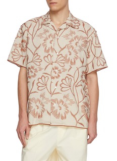 TOGA VIRILIS - Short Sleeve Embroidered Floral Outline Cotton Linen Blend Shirt