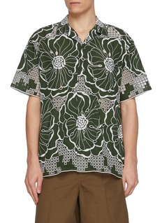 Graphic florals unfold across crisp cotton, where bold embroidery outlines bloom with rhythmic precision. Rooted in Toga Virilis’ expressive design language, the short-sleeve silhouette balances decorative craft with ease—ideal with utility trousers or relaxed tailoring for summer refinement.