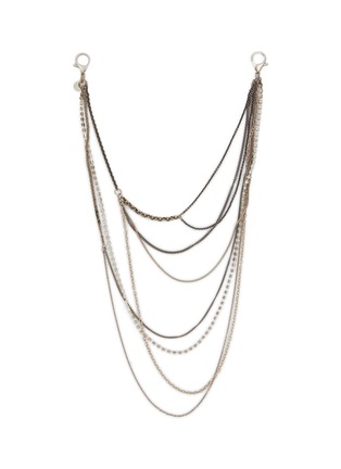 Add an edgy touch to your denim with the Tom Binns jean chain. This accessory features a combination of chains and charms, designed to clip onto your jeans for a unique, punk-inspired look. Perfect for adding personality to your casual wear. Wear with distressed jeans for a bold, rebellious style.